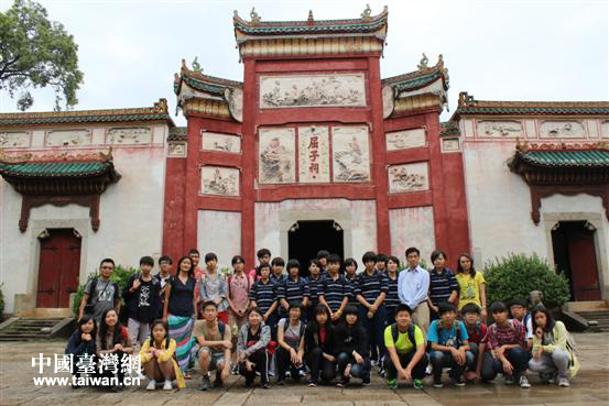 臺灣青少年學生在岳陽汨羅江畔屈子祠合影。(圖片來源:岳陽市臺辦)