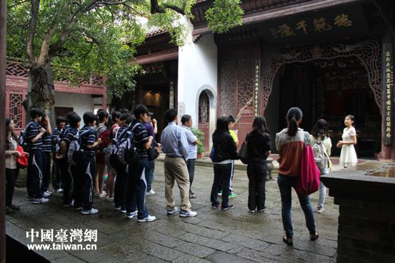 臺灣青少年學生在屈子祠里探尋屈原文化。(圖片來源:岳陽市臺辦)