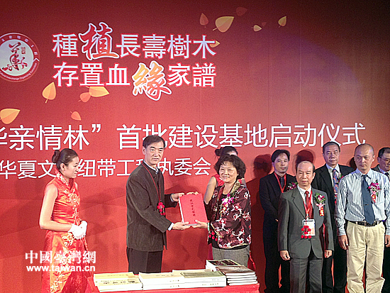 當(dāng)天的啟動(dòng)儀式現(xiàn)場,活動(dòng)豐富且蘊(yùn)含深意。來自臺(tái)灣的各家宗親會(huì)代表共同向主辦方捐贈(zèng)了上千本近30個(gè)族系的家譜和族譜。來自兩岸的共建代表宣讀了由中國國民黨十一位中常委聯(lián)署的“共建宣言”,呼吁兩岸各界同胞廣泛參與和支持建設(shè)活動(dòng)。首創(chuàng)中文“電腦”一詞和“孝敬”微編的臺(tái)灣中華文化協(xié)會(huì)理事長范光陵將特為“中華親情林”所創(chuàng)作的詩意油畫捐贈(zèng)給了主辦單位,以表達(dá)對(duì)建設(shè)活動(dòng)的熱心參與和支持。