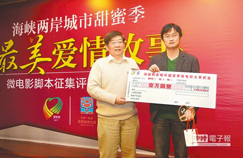 據臺灣《旺報》報道,第三屆兩岸城市甜蜜季愛情微電影故事評選結果揭曉,16日在廈門日報社舉行頒獎儀式。