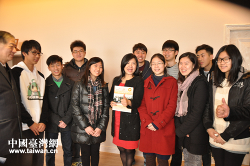 上海臺商子女學校的領導13日正在與獲得三標的部分臺灣藉同學在一起。(上海臺協 玉龍 攝)