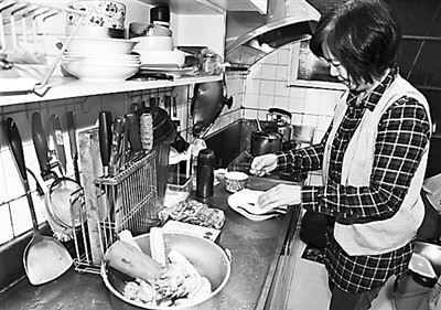 臺北:臺北市民鐘克臣的太太在家中清洗食材,準備餐食(2月14日攝)。吳景騰攝(新華社發(fā))