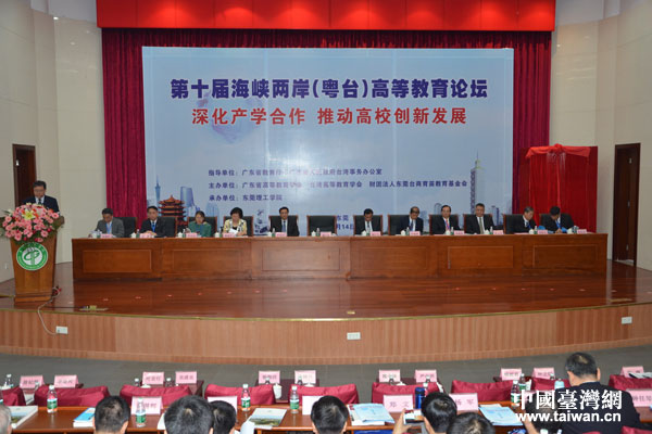 中國(guó)臺(tái)灣網(wǎng)5月14日訊 5月14日,由廣東省教育廳、廣東省臺(tái)辦指導(dǎo),廣東省高等教育學(xué)會(huì)、臺(tái)灣高等教育學(xué)會(huì)、東莞臺(tái)商育苗教育基金會(huì)主辦的第十屆海峽兩岸(粵臺(tái))高等教育論壇在廣東東莞理工學(xué)院舉辦。國(guó)臺(tái)辦交流局副局長(zhǎng)嚴(yán)中洲,廣東省臺(tái)辦主任陳國(guó)興,廣東省教育廳副廳長(zhǎng)魏中林,東莞市副市長(zhǎng)喻麗君,臺(tái)灣佛光大學(xué)總校長(zhǎng)楊朝祥,臺(tái)灣教育大學(xué)系統(tǒng)總校長(zhǎng)吳清基,東莞臺(tái)商育苗教育基金會(huì)葉宏燈及兩岸高校和企業(yè)負(fù)責(zé)人300余人參加此次論壇。
