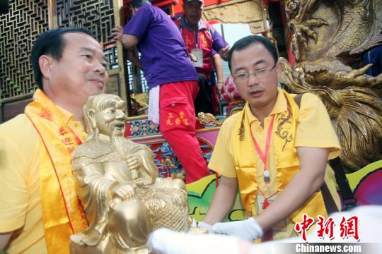 湖南神農大帝祖廟圣駕,6月6日至16日首次赴臺灣巡境賜福。圣駕在新北市三重先嗇宮駐蹕安座,受到廟方及信眾盛大歡迎。 黃少華 攝