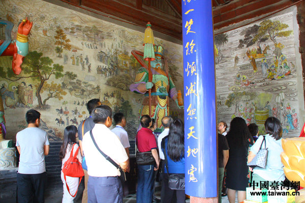 8月18日,“第14屆遼寧臺灣周”在錦州市拉開帷幕。圖為參會臺灣嘉賓參訪錦州義縣奉國寺壁畫。(中國臺灣網(wǎng) 王怡然 攝)