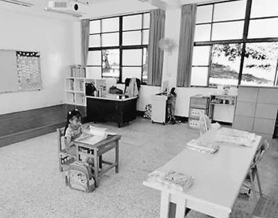 2014年9月,臺灣花蓮卓楓小學(xué)唯一的小一新生古蕊籃在教室中。
