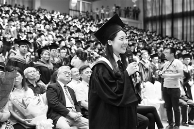 圖為在臺灣淡江大學就讀的一位陸生在畢業(yè)典禮上發(fā)言。新華社記者 才揚攝