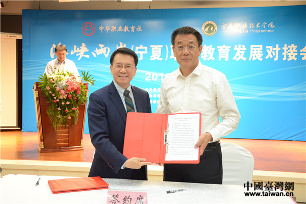 寧夏職業技術學院與臺灣中國科技大學簽署合作協議。(中國臺灣網 李寧 攝)