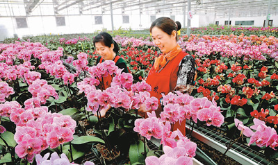3月19日,新疆五家渠雍大農業科技有限公司蘭花培育基地內,園丁正打理蘭花。該基地由臺商投資控股的上海雍大實業有限公司在新疆生產建設兵團第六師五家渠市投資建設,擁有130個品種,年產3000萬株各色蘭花,主要銷往西北省區及絲綢之路沿線國家。