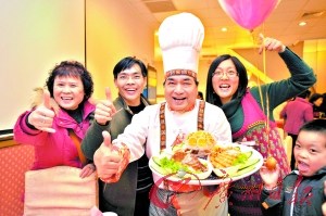 年夜飯大廚黃德忠與廣州游客開心合影。本報(bào)特派臺(tái)灣記者黃澄鋒攝