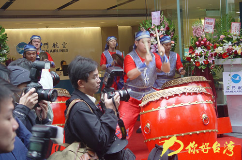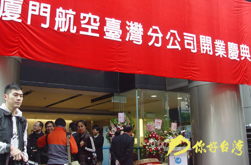1月6日上午,廈門航空臺灣分公司開業儀式在臺北市民生東路盛大舉行,典禮在臺灣知名的“廷威鼓陣”氣勢磅礴的演出中拉開序幕。廈航總經理車尚輪專程到臺北主持剪彩,中國國民黨榮譽主席吳伯雄、海峽交流基金會董事長江丙坤、臺“交通部民航局長”李龍文、臺“交通部觀光局長”賴瑟珍和臺灣各航空公司董事長出席開幕典禮。