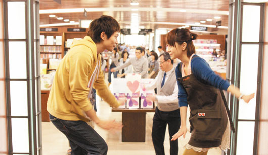 《一頁臺北》把臺北誠品書店帶進(jìn)劇中,男女主角姚淳耀(左)、郭采潔的交會、碰撞在此展開。圖/原子映象提供