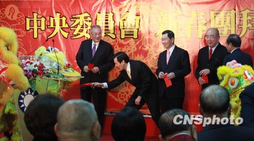 2月22日,中國國民黨中央委員新春團拜會在中央黨部十二樓舉行。圖為國民黨主席馬英九(左四)率黨的高層出席團拜會。中新社發 耿軍 攝