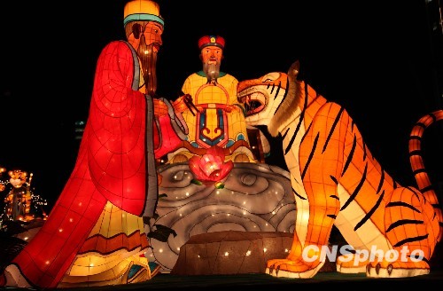 圖為根據中國古代傳說制作的花燈“保生大帝醫虎喉”。中新社發 耿軍 攝