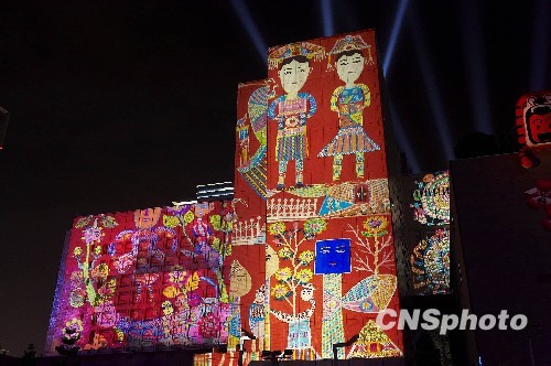 一年一度、聲勢(shì)浩大的臺(tái)北燈節(jié)公共藝術(shù)展演27日盛大登場(chǎng),以“福虎生花三部曲”為主題的燈光秀將在夜間把臺(tái)北市府大樓變身成為一個(gè)流芳溢彩的大燈籠。圖為三部曲之一的“青春花”。中新社發(fā) 閆曉虹 攝