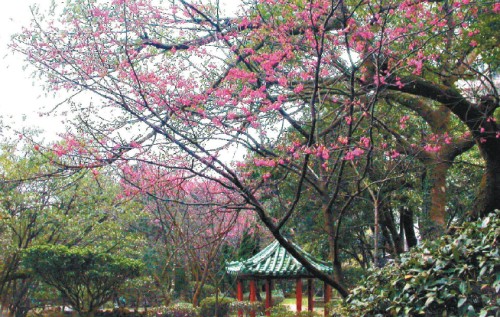 占地125公頃的陽明公園共有兩千株櫻花,早生種的山櫻花、八重櫻等已盛情綻放。中、晚生品種的吉野櫻、昭和櫻、大島櫻及關山櫻等,也正含苞待放,春節期間只待民眾上山“尋芳”。