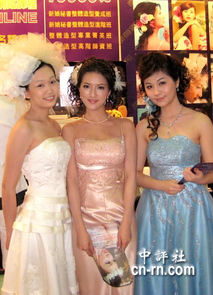 彩妝業者模特兒站臺宣傳。(中評社鄒巧韻攝)