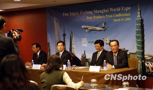 上海市旅游協會、臺北市觀光委員會攜臺灣長榮航空15日在紐約舉辦“暢游臺北、前進世博”旅游產品發布會,共同推廣上海世博會及臺北觀光,并為2010臺北國際花卉博覽會暖身。中新社發 孫宇挺 攝