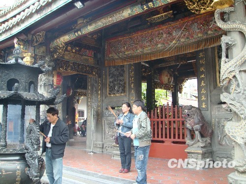 圖為4月4日,幾位游人正在保安宮上香。中新社發(fā) 羅欽文 攝