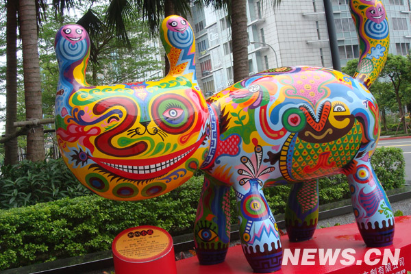 臺北街頭不時能看見頗有創意的雕塑和藝術作品。新華社駐臺記者 向建國攝