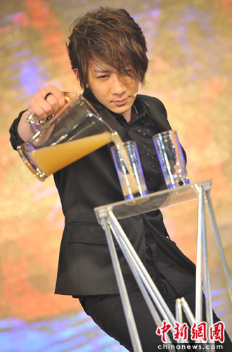 4月25日,由《時尚芭莎》雜志社主辦的第8屆“BAZAAR明星慈善夜”活動在上海舉行,圖為劉謙為現場嘉賓表演精彩炫目的魔術。 中新網記者 金碩 攝