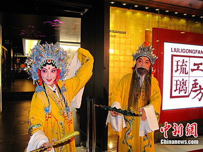 7月15日,臺灣某知名文創品牌邀請大陸昆曲名家蔡正仁與魏春榮在北京共同詮釋琉璃藝術。蔡正仁與魏春榮以《長生殿》中的唐明皇與楊貴妃造型亮相,并表演了精彩唱段。國臺辦經濟局局長徐莽、海協會副會長王在希出席了該活動。
