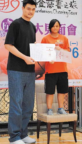 姚明在“2010姚基金慈善之旅”主辦單位安排下,和八八水災(zāi)災(zāi)區(qū)148名高雄縣中學(xué)生見(jiàn)面,學(xué)生們看到姚明穿著牛仔褲、輕便打扮出現(xiàn)在義大世界購(gòu)物中心,全場(chǎng)尖叫聲不斷。