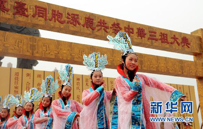 8月17日,“冀臺同胞共祭中華三祖大典”在河北涿鹿中華合符壇廣場舉行,參加第九屆冀臺經濟合作洽談會的5000多名兩岸同胞參加了祭拜儀式。涿鹿是中華文明的發祥地之一,5000多年前,中華民族的始祖黃帝、炎帝、蚩尤在這里征戰、耕作、融合,開創了中華文明史,史稱“千古文明開涿鹿”。