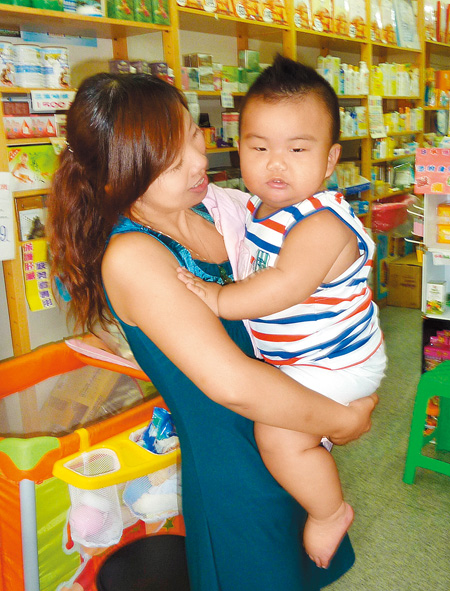 家中開設嬰幼兒用品店的謝汶岑說,她是幼保科畢業,婚前曾任保母,照顧嬰兒駕輕就熟,如今寶貝兒子成為嬰幼兒用品店的活招牌,是“甜蜜的負擔”。