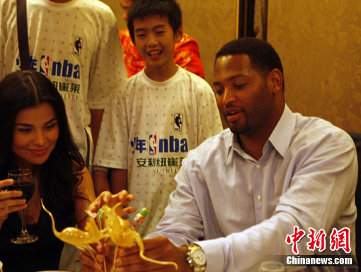 8月24日晚,來自臺(tái)灣、內(nèi)地的24名少年NBA團(tuán)員在北京共同欣賞中國著名的民間工藝吹糖人和捏制面人,并親手制作這些工藝品,孩子們將中國民間工藝品贈(zèng)送給NBA球星。中新社記者 任海霞 攝