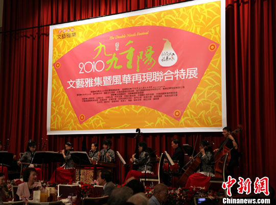 10月14日,臺灣藝文界舉行一年一度的重陽聯(lián)誼活動和2010文藝雅集暨風華再現(xiàn)聯(lián)合特展。圖為樂團在活動上表演節(jié)目。 中新社發(fā) 陳立宇 攝