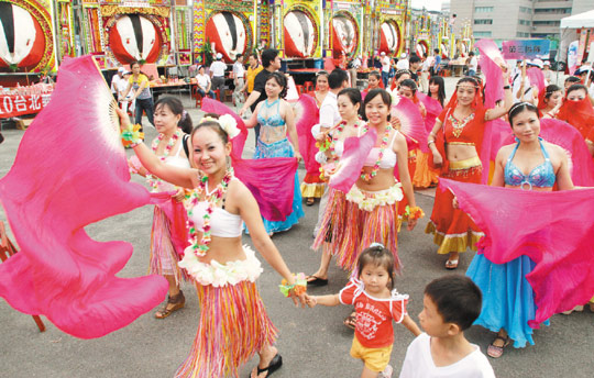 據臺灣媒體報道,2010臺北客家義民嘉年華最高潮的“挑擔奉飯”,昨天上午熱鬧登場。臺北市長郝龍斌親自挑擔帶隊,率領共1250擔的民間挑擔隊伍踩街,一路上浩浩蕩蕩。