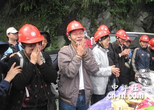 近30位失蹤陸客的家屬昨天前往蘇花公路112.8公里處,工作人員在現(xiàn)場(chǎng)準(zhǔn)備了鮮花、水果、家屬們雙手合十,手里拿著香邊哭邊跪,灑冥紙、獻(xiàn)花,朝遠(yuǎn)方祈福。