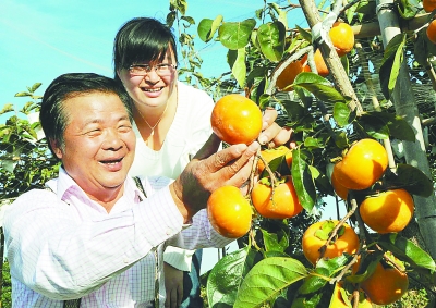 24日,在仙游臺灣農民創業園里,臺商蔡先生看著掛滿枝頭的甜柿,高興得合不攏嘴。蔡先生種植的臺灣甜柿個大果甜,品質上乘,暢銷北京、上海、廣州等地。記者 關建東 通訊員 鄭志忠 攝