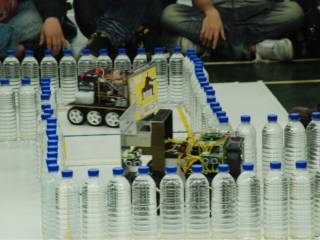 勤益科技大學(xué)舉辦的“電腦化運(yùn)動(dòng)競技大賽”,今年是報(bào)名隊(duì)伍最多的一次。競賽項(xiàng)目包含:清潔機(jī)器人程序設(shè)計(jì)、機(jī)器狗賽跑、電腦鼠走迷宮、自走車相撲、自走車競速等11項(xiàng)。其中“自走車競速比賽”共有96組隊(duì)伍報(bào)名,競爭最為激烈,最后由明新科大、正修科大、東方設(shè)計(jì)學(xué)院隊(duì)伍分別以24秒、41秒、59秒走完 20米,獲得前三名。
