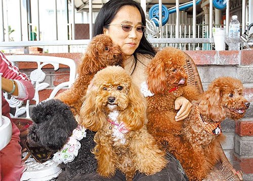 杜月華說,因三個孩子已長大到外地求學,丈夫又在偏遠山區當警察,只剩她一人在家很孤單,而且家中曾四度遭小偷,于是四年前開始養貴賓狗作伴,因為“貴賓狗長得很像我最愛的泰迪熊”,她見一只愛一只,如今已養八只,一只黑色、七只紅色。