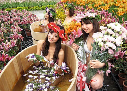 30日的活動在中社花市舉辦,4名模特兒身材火辣,穿戴上后里主要銷日花卉,包括百合、洋桔梗、文心蘭、火鶴,再以薰衣草等香草當泡澡主材,百合等花卉的花瓣放進泡浴桶,模特兒清涼入浴,在一片花海的花花世界中,更顯繽紛,活動主持人不禁喊出“真是色香味俱全”。