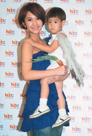 楊丞琳抱著丘比特小童,互動有趣。圖片來源:臺灣《聯合報》