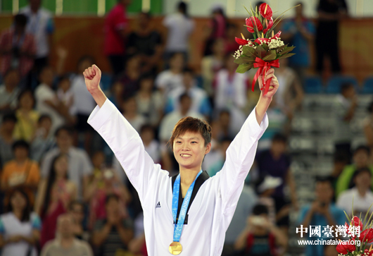 深圳大運會中華臺北跆拳道女子73公斤級冠軍得主莊佳佳。(中國臺灣網 劉海偉 攝)