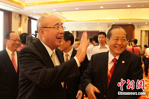 8月25日下午,中國國民黨榮譽主席吳伯雄、副主席蔣孝嚴等臺灣政要及眾多臺商、臺灣知名人士約800人抵達江西南昌,參加在此間舉行的第九屆“贛臺經貿合作研討會”。圖為吳伯雄在參加大會開幕前的賓主見面會。中新社發 劉占昆 攝