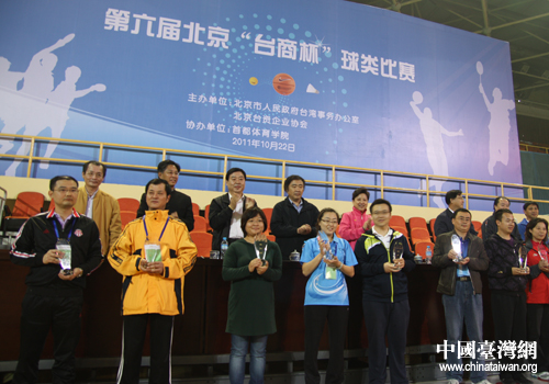 第六屆北京“臺(tái)商杯”球類(lèi)比賽頒獎(jiǎng)現(xiàn)場(chǎng)。(中國(guó)臺(tái)灣網(wǎng) 李瑞艷 攝)