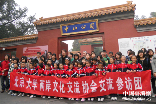 中國(guó)臺(tái)灣網(wǎng)10月23日北京訊 22日,由宋慶齡基金會(huì)與中國(guó)臺(tái)灣網(wǎng)主辦的“感受愛(ài)、凝聚愛(ài)、傳遞愛(ài)——兩岸青年與玉樹(shù)孩子們?cè)谝黄稹被顒?dòng)在北京完美落幕。北京大學(xué)兩岸文化交流協(xié)會(huì)來(lái)自臺(tái)灣、香港和大陸的40余位學(xué)子帶領(lǐng)著現(xiàn)就讀于北京市海淀外國(guó)語(yǔ)實(shí)驗(yàn)學(xué)校的玉樹(shù)孩子們一起參觀了中山公園、宋慶齡故居等地,并在海淀外國(guó)語(yǔ)實(shí)驗(yàn)學(xué)校進(jìn)行了座談。
