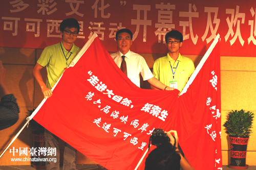 儀式上,青海省政協副主席鮑義志分別向臺灣和青海兩地大學生授旗并宣布活動正式啟動。(中國臺灣網、青海臺辦聯合報道)