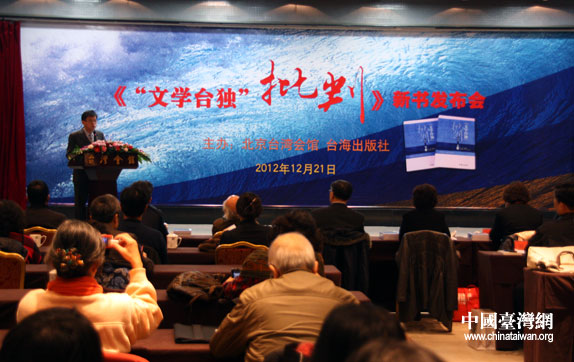 中國臺(tái)灣網(wǎng)12月24日北京消息 《“文學(xué)臺(tái)獨(dú)”批判》(增訂本)新書發(fā)布會(huì)12月21日在北京臺(tái)灣會(huì)館舉行。國臺(tái)辦新聞局副局長(zhǎng)范麗青等有關(guān)方面領(lǐng)導(dǎo)、來自海峽兩岸的專家學(xué)者和新聞界人士近70人出席。