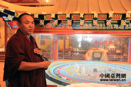 達扎書院副院長尕哇降措在介紹書院藏品。(中國臺灣網 馬迪 攝)