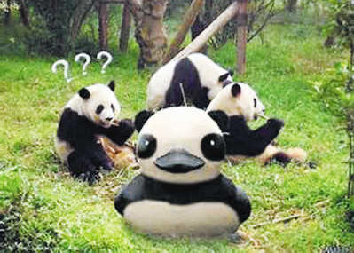黃色小鴨上周“游”進臺灣高雄港后,一周內已吸引60多萬鴨迷。還有不少臺灣網友發揮創意,在網絡上設計了鋼鐵鴨、蘭陵鴨、假面鴨等,有的讓小鴨梳上高雄市長陳菊的爆炸發式,有的給小鴨穿上丁字褲。圖為一位網友把目前在臺灣最走紅的黃鴨和熊貓寶寶合體,創作出了熊貓小鴨,展現將娛樂進行到底的態度。