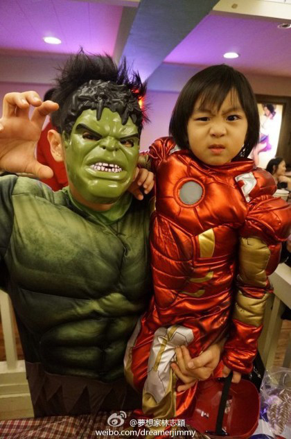 中國臺灣網10月31日消息 據臺灣媒體報道,今天是萬圣節,林志穎與兒子Kimi未能免俗也玩起角色扮演,林志穎扮成綠巨人,Kimi則是鋼鐵人,兩人還玩起對打,爸爸林志穎理所當然得成為兒子的手下敗將。網友看了直呼好可愛,也覺得Kimi好幸福,有個好爸爸。(中國臺灣網 朱煉)