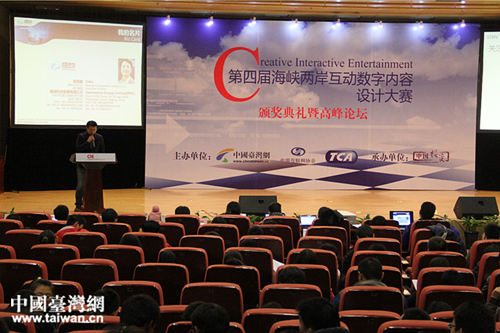 12月2日,由中國臺灣網(wǎng)、中國互聯(lián)網(wǎng)協(xié)會和臺北市電腦公會主辦,中國投資網(wǎng)承辦的2013第四屆海峽兩岸互動數(shù)字內(nèi)容設(shè)計大賽頒獎典禮暨高峰論壇在北京舉行。(中國臺灣網(wǎng) 劉承思 攝)