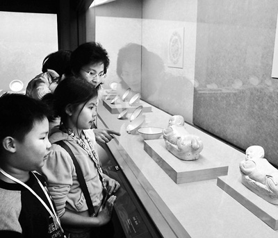 近日,臺北故宮館藏定窯瓷器特展開幕,臺北故宮精選132件作品展出,公眾可近距離感受定窯瓷器的風采。定窯為我國宋代著名瓷窯之一,其白瓷作品頗受推崇。圖為1月10日觀眾在展廳內觀看定窯嬰兒枕。