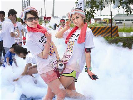 泡泡路跑不正式計(jì)時(shí),也沒(méi)有長(zhǎng)短程距離限制,整條路線就只有5公里,適合各年齡層的大小朋友呼朋引伴來(lái)放松。主辦單位設(shè)置6臺(tái)大型泡泡風(fēng)扇機(jī),在路線每隔一段距離,不斷噴出白色、藍(lán)色、紅色及黃色等大量泡泡,堆積最高時(shí)還可達(dá)成年人胸部,讓人邊跑邊玩,相當(dāng)受歡迎。